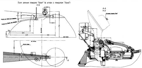 Установка ночного смотрового прибора ТКН-1 в командирской башенке танка «Объект 430» и его поле зрения.