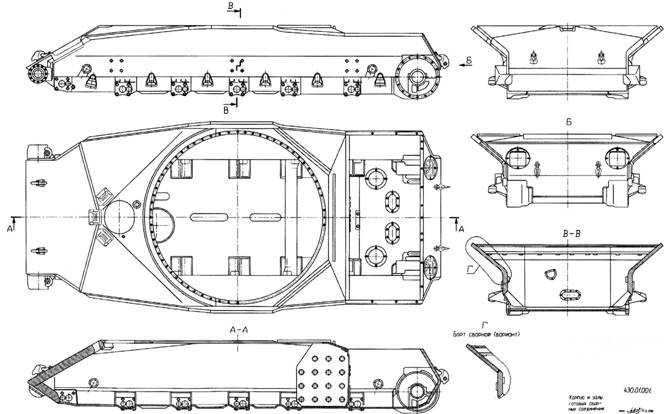 При изготовлении полигонных образцов броневая защита корпуса машины претерпела некоторые изменения. Так, например, сварные борта стали изготавливать цельнокатаными переменной толщины (80 и 55 мм) с сохранением углов наклона их верхней части, толщину гнутого кормового листа увеличили до 45 мм с одновременным уменьшением углов наклона его верхней и нижней части с 30 до 17' от вертикали. Кроме того, увеличили толщину крышек люков и усилили крепление подбашенного листа. Претерпела изменения и конструкция башни: в отдельных местах увеличили толщину корпуса башни, усилили крепление внутреннего погона опоры и ввели люк для установки воздухопитающей трубы ОПВТ в кормовой части крыши, закрывавшийся броневой крышкой (над люком для выброса стреляных гильз), увеличили количество десантных поручней на бортах башни и изменили расположение рымов на ее лобовой части.