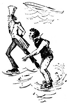 Паспарту тут же сбросил опостылевшие сандалии и в новой обуви, тяжеловесной несколько, но не лишенной изящества, гордо зашагал к берегу моря. За ним, с водяными коньками под мышкой, двинулся и Филеас Фогг. У моря переоблачился и он, и вот они —