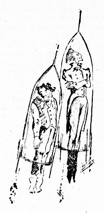 Но последствия аварии… Под прозрачными колпаками принимающей установки, находившейся в тысяче километров от лаборатории, появились: в первом — паривший в воздухе великолепный цилиндр стального цвета, во втором — несколько тяжеловесные, хотя и не лишенные изящества водяные башмаки.
