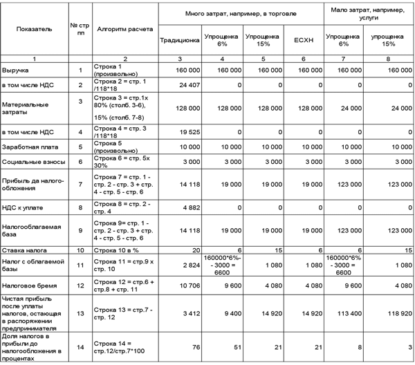 Для начинающих предпринимателей традиционка невыгодна. Посмотрите на таблицу расчета налогов. В строке 14 указана доля налогов в прибыли до налогообложения. В традиционке она составляет 76 %, в других – от 3 до 51 %.