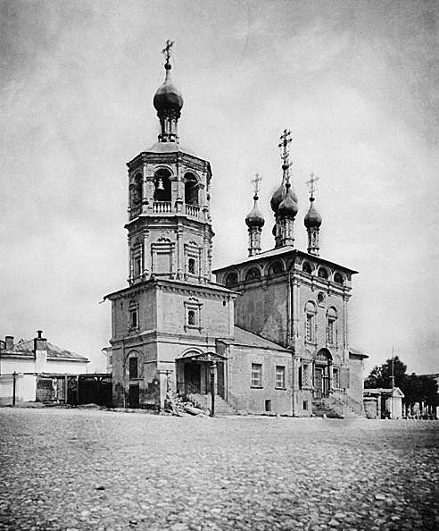 Деревянная церковь сгорела в 1629 г.; спустя какое-то время она была вновь отстроена, но уже из камня. В самом конце XVII столетия думный дворянин и печатник Дементий Минич Башмаков на свои средства и на пожертвование, завещанное подьячим Шандиным (для постройки нового здания подьячий Алексей Шандин, прежний прихожанин сгоревшей церкви, завещал значительную по тем временам сумму – 200 руб.), перестроил ее в том основном образе, в котором она и дожила до революции. Сам устроитель церковного здания Башмаков, чьи годы рождения и смерти неизвестны даже в наши просвещенные дни, считался известным государственным деятелем России 2-й половины XVII в. Дьяк с 1665 г., думный дьяк с 1676 г. и печатник (хранитель государственной печати) с 1688 г., Башмаков был еще и думным дворянином. Название «думные дворяне» употреблялось со 2-й половины XVI в. До этого они назывались «дети боярские думные», «дворяне у государя в думе», «дворяне, которые живут у государя с бояры». Думные дворяне участвовали в заседаниях Боярской думы, в работе ее комиссий, управляли приказами, выполняли придворные и военные обязанности, назначались воеводами в города. Некоторые из думных дворян дослуживались до чина окольничего и боярина. В XVI в. думные дворяне чаще всего принадлежали к родовитым фамилиям, и число их было невелико. В XVII в. с укреплением экономического и политического положения дворян и дальнейшей централизацией государственного управления число думных дворян увеличилось за счет неродовитых дворян и детей дьяков. Думные дворяне наряду с думными дьяками были опорой царской власти в борьбе с боярской аристократией в Боярской думе. В 1655–1700 гг. имя Башмакова упоминается в качестве служащего целых 16 приказов: Разрядного, Посольского, Большого дворца, Сыскного и др. При Алексее Михайловиче в 1658–1664 гг. этот разносторонний человек возглавлял даже Приказ тайных дел, где участвовал в следствии над участниками Московского восстания 1662 г. В 1672 г. Башмаков ненадолго перешел в дипломатическое ведомство и был отправлен с посольством в Польшу. Последний раз имя дьяка Башмакова упоминается в источниках в 1700 г.