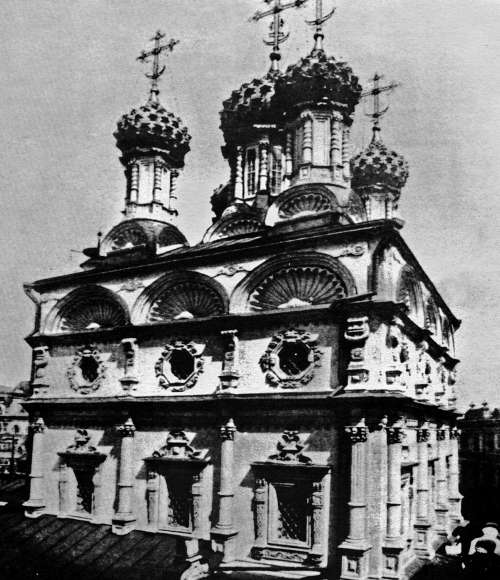 А теперь о московском барокко, в стиле которого была построена эта церковь. Процессы образования нового стиля наиболее активно развернулись в Москве и во всей зоне ее культурного влияния. Декоративность в московской архитектуре, освобожденная от сдерживающих начал, которые несла в себе традиция XVI столетия, исчерпала себя, сохранившись в хронологически отстававших провинциальных вариантах. Но процессы формирования светского мировоззрения развивались и углублялись. Их отражали утвердившиеся изменения во всей художественной культуре, которые не могли миновать и зодчество. В его пределах начались поиски новых средств, позволяющих объединить, дисциплинировать форму, поиски стиля. Архитектор А.М. Горностаев назвал его «московским барокко». Термин (как, впрочем, и все почти термины) условный. Развернутая Г. Вёльфлином система определений барокко в архитектуре к этому явлению неприменима. Но предметом исследований Вёльфлина было барокко Рима; он сам подчеркивал, что «общего для всей Италии барокко нет». Те м более «не знает единого барокко с ясно очерченной формальной системой» Европа севернее Альп.
