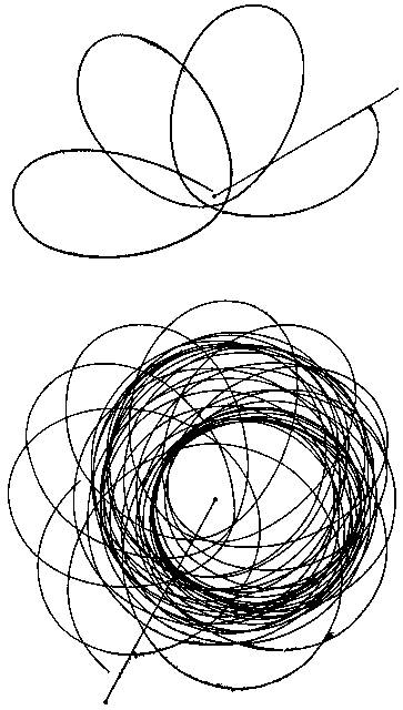 Траектории движения единичного заряда вокруг заряженного центра, снятые с помощью траектографа
