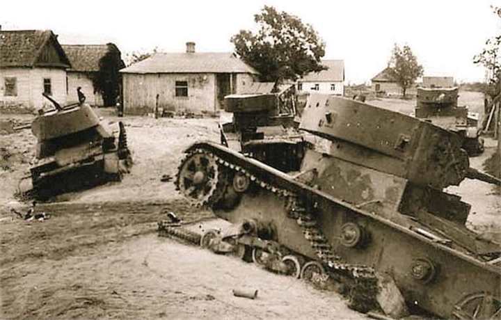 Подбитые под Брестом советские легкие танки Т-26. Июнь 1941 года
