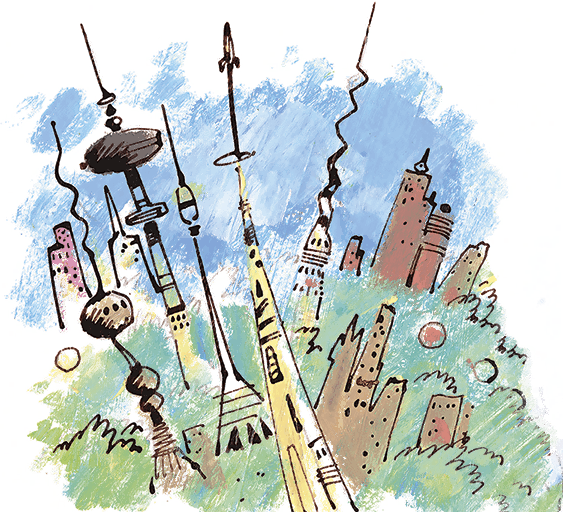 Когда человек подходил к пузырю, открывался круглый люк. Человек садился в кресло, люк затягивался прозрачной пленкой, и пассажир нажимал на одну из кнопок. И сразу пузырь чуть-чуть приподнимался над землей и улетал.