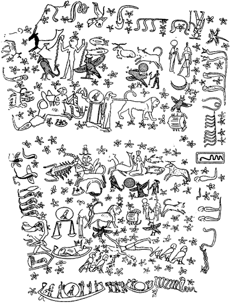 Рис. 28. Верхний и Нижний Атрибские Зодиаки, найденные Флиндерсом Петри в 1901 году в Верхнем Египте.