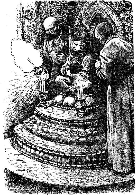 Стоя перед окошком, в котором показалась богиня, я долго думал, о чем мне спросить сухощавого старца, стоявшего по левую руку ее. Я размышлял над этим в течение долгих минут, пока Кумари, не замечая, смотрела на меня и на тех, кто стоял рядом. Впервые, хотя и не было переводчика, у меня появилась возможность хоть о чем-нибудь да спросить божество! Но я так ничего и не придумал.