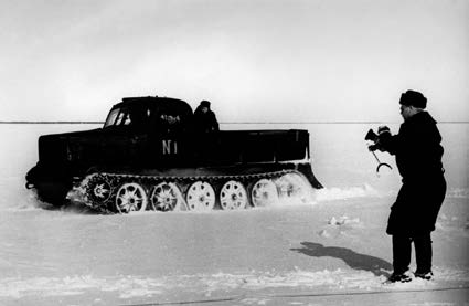 Впереди Сибирский тракт…И.Ганзелка и М.Зикмунд (в центре) с Л.Шинкаревым (слева) и
