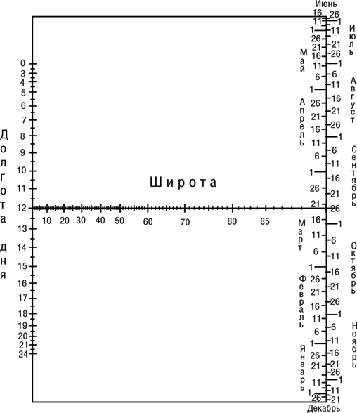 Рис. 2.7. Номограмма 1. Определение широты местонахождения