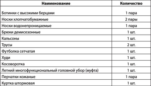 Выживание в аварийной ситуации зависит и от правильности подбора одежды, в частности от ее соответствия сезону. Для облегчения подбора одежды и аксессуаров в зависимости от сезона можно воспользоваться табл. 3.2–3.4.