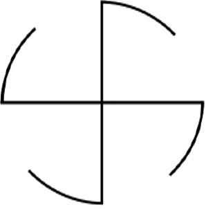 У китайцев: «накопление счастливых символов Десяти Тысяч сил». Это ранняя форма иероглифа «фан», означающего четыре предела космоса и земли (четыре части света). В качестве рамки эта форма означает «вань цзы» – Десять Тысяч Вещей или последовательностей, то есть не имеющую ни начала, ни конца последовательность, бесконечное обновление жизни, вечность. В Китае правосторонняя (обратная) свастика – символ женской силы (инь), левосторонняя (прямая) – мужской силы (ян).