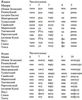 Еще нагляднее демонстрируют большое сходство языков полинизийских народов числительные: