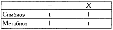 Таким образом, точный розыск природы тех двух взаимоотношений приводит к такой поясняющей таблице: