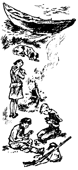 Дуня следила за болотом. Там, среди кочек, к озеру ползли Коля и Васятка, волоча за собой ружьё.