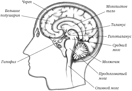 На рис. 1 вы видите то, что обычно скрыто от нашего взгляда черепной коробкой – головной мозг. Этот уникальный орган включает в себя несколько отделов, в «ведомстве» каждого из которых находятся определенные функции, обеспечивающие жизнедеятельность нашего организма.