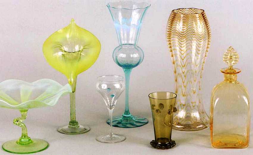 Представленные изделия из цветного стекла в стилях историзм и модерн принадлежат фирме английских стеклодувов «Джеймс Пауэлл и сыновья», также известной как компания «Уайтферс глас». Родоначальник семейного предприятия лондонский предприниматель и виноторговец Джеймс Пауэлл в 1834 решил заняться производством художественного стекла, для чего и приобрел небольшой лондонский стекольный завод «Уайтферс глас», основанный еще в конце XVII века. Основной продукцией нового предприятия стало декоративно обработанное цветное стекло — дешевая альтернатива средневековому витражу, массовое производство которого было возможно вследствие замены ручной резки и живописи на формование и печать. Это было время расцвета готического Возрождения в Англии, когда в стиле неоготики строились сотни новых церквей. Пауэлл запатентовал метод изготовления цветных витражных стеклянных секций, что сделало его лидером стекольного производства в Викторианскую эпоху.