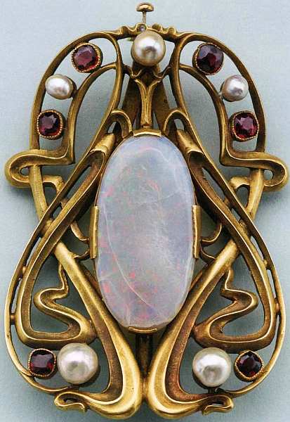 Перед зрителем — золотая пряжка в виде большого стилизованного жука; его спинку образует большой овальный опал, окруженный причудливым переплетением лапок, в которое вкраплены жемчуг и гранаты. Автор этого эффектного украшения — немецкий архитектор и дизайнер, представитель стиля модерн Эдуард Колонна. Он получил архитектурное образование в Бельгии, но 1882 уехал в Нью-Йорк, где первое время работал в фирме Луиса Тиффани — в то время ведущего декоратора Соединенных Штатов. Позже художник в течение ряда лет был главным дизайнером и проектировщиком интерьеров в компании «Барни и Смит» — крупнейшего производителя железнодорожных вагонов в стране. В 1889 он переехал в Монреаль, где работал как архитектор и дизайнер железнодорожных поездов и станций для ряда ведущих канадских компаний, а также выполнял частные заказы на проектирование домов. Помимо деятельности архитектора и оформителя интерьеров Колонна увлекался прикладным творчеством и в том числе ювелирным мастерством. В 1898 он вернулся в Европу, где сотрудничал с крупными художественными галереями.