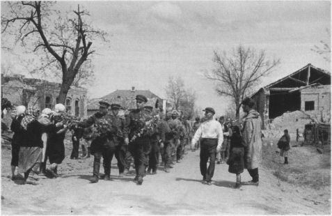 У нас и страх, и радость — наконец–то началось! Короткое затишье и — «попёрли», бросая технику, немцы, румыны. Затем в течение двух дней жуткое затишье. Неожиданно из–за дома появилась группа фашистов, которая, пригибаясь, перебежками, тащила станковый пулемёт в сторону железной дороги. Засели среди развалин сгоревшего склада, стали окапываться. Перед ними простиралось хорошо просматриваемое и простреливаемое пространство между шоссейной и железной дорогой. Нам стало ясно, откуда придут «наши». В слове «наши» каждый видел отца или брата. И вдруг разведка донесла: «Наши!» Далеко в лесополосе, со стороны железной дороги, появилось движение. Это военные. Им надо было преодолеть это открытое пространство. Стали быстро соображать: «Что делать? Что делать?» Немцы хорошо замаскировались и, видимо, тоже заметили движение. Ждать было нельзя. На себя взял ответственность юноша лет шестнадцати. Задача — дворами пробежать квартала три, где в каждом могли быть немцы, затем ползком и перебежками преодолеть открытое пространство, простреливаемое пулемётом… И он побежал… Мы замерли. Казалось, что время остановилось. Несколько часов тишины и неведения. И вдруг видим — наши любимые, родные солдаты, которых мы так долго ждали, ведут трёх фрицев. Юноша сумел–таки пролезть, пробежать, проползти и успеть предупредить. К нам он уже не вернулся, говорили, что он ушёл с тем отрядом, а его дальнейшая судьба неизвестна.