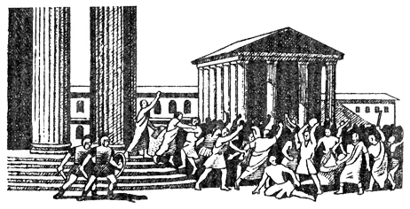 Однако инцидент с запиской практически не прервал страстного обсуждения. Я продолжал выступать против предложения о конфискации имущества заключённых и призвал народных трибунов поддержать меня, наложив вето. Однако трибуны боялись идти против мнения большинства и не сделали этого. В конце концов Цицерон, в основном для того, чтобы закончить обсуждения, а не по какой-либо другой причине, отклонил вопрос о конфискации и просто поставил на голосование предложение Катона о вынесении смертного приговора. Большинством голосов смертный приговор был утверждён. Те немногие, кто воздержался от голосования, привлекли к себе всеобщее враждебное внимание. Лично я, выходя из здания сената, оказался в окружении группы вооружённых стражников Цицерона, которые подошли ко мне с обнажёнными мечами и, похоже, были готовы использовать их. Немногие из моих друзей собрались вокруг меня и прикрыли своими тогами, но были и те, кто под воздействием страстей, возбуждённых Катоном, призывали стражей исполнить свой долг и покончить с предателем. Однако стражи ждали, пока сам Цицерон отдаст им нужный приказ. Но Цицерон, хотя говорили, что позже он сожалел об этом, запретил им приближаться ко мне. Не желая искушать судьбу, я покинул своих коллег, в то время как Цицерон в сопровождении большинства сенаторов и толпы вооружённых сторонников из представителей богатых слоёв населения медленно отправился через форум к тюрьме, где должна была состояться казнь. Сюда скоро привели и заговорщиков. Их через люк опустили в подземную темницу и там задушили. После того как Цицерон, присутствовавший при казни, вышел из подземелья, он громко заявил: «Они своё отжили», — а потом отправился домой в сопровождении большой, истерически настроенной толпы, которая, к его восхищению, приветствовала его как второго основателя Рима, спасителя и отца отечества.