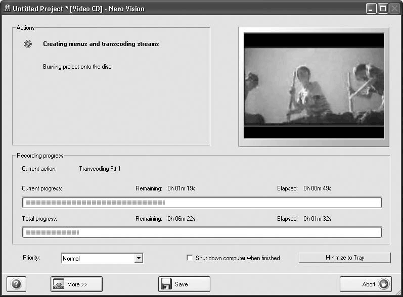Созданный диск формата Video CD можно воспроизвести c помощью бытового проигрывателя CD/DVD либо с помощью компьютерного привода при наличии специального программного проигрывателя. Проигрыватель Windows Media такие диски воспроизводить не умеет. Для этого нужно специальное приложение Nero ShowTime.