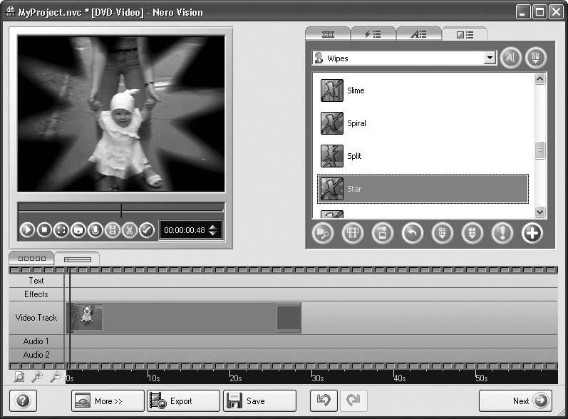 Рис. 7.4. Благодаря переходу в начале первые кадры фильма появляются в форме звезды