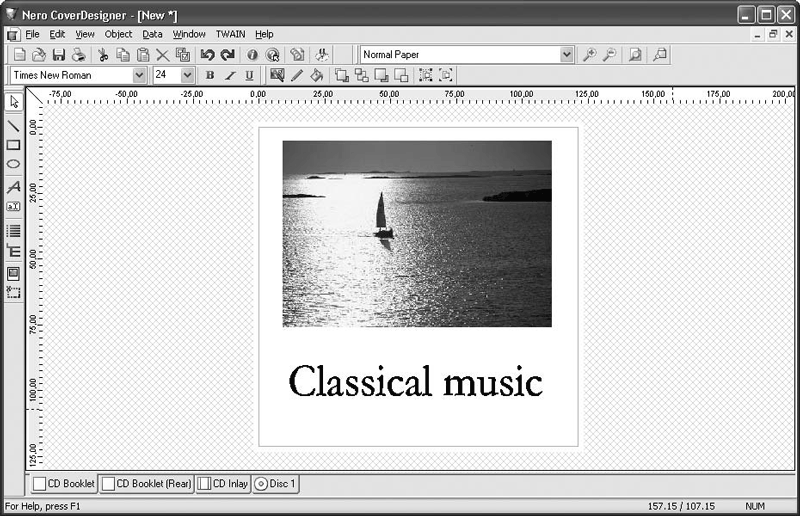 13. Работа по созданию передней части обложки закончена. Перейдите на вкладку CD Booklet (Rear) (Буклет CD (задний)). На ней вы сможете видеть загруженную форму обложки.