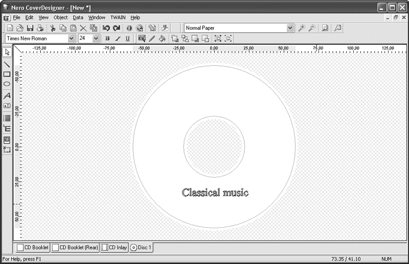 14. Перейдите на вкладку CD Inlay (CD-вкладка). Откроется редактор с загруженной в него формой вкладыша.