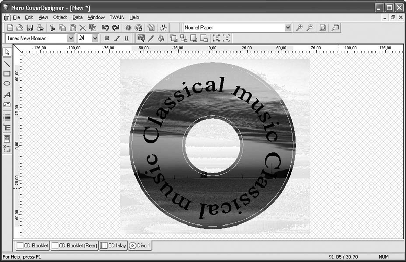 5. Добавьте рисунок на диск, нажав кнопку Image Tool (Изображение) и выбрав нужный файл. Окончательный вариант наклейки для диска может выглядеть так, как показано на рис. 9.11.
