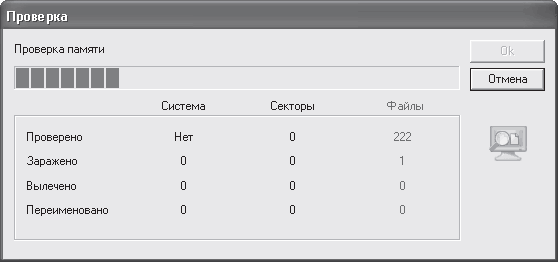 Panda не относится к тем программам, наличие которых в системе можно не замечать месяцами. Приготовьтесь к тому, что эта программа постоянно будет что-то делать сама и требовать активных действий от вас. Начнем с того, что Panda – один из немногих антивирусов, который сканирует память на наличие вирусов непосредственно в процессе установки. В данном случае ваше вмешательство не требуется – программа просто выведет окно о результатах проверки (рис. 3.23).