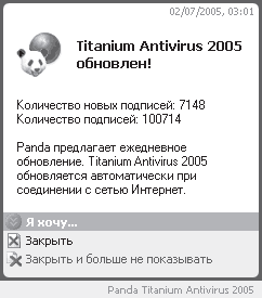 Далее вам постоянно придется общаться с программой, отвечая на множество ее сообщений, которые выглядят как небольшие окна в области уведомлений. Обычно они содержат предостерегающую или просто интересную информацию, а также список возможных действий с вашей стороны. Например, Panda постоянно сообщает о текущем уровне безопасности компьютера, о необходимости обновления антивирусных баз, а также сигнализирует о замеченном вредоносном коде (рис. 3.24).