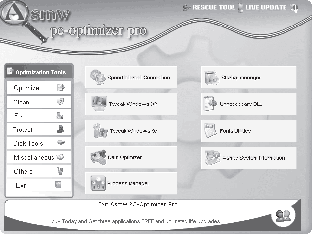 Рис. 5.20. Окно программы Asmw PC-Optimizer Pro