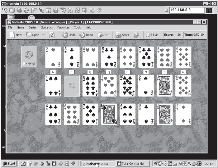 Рис. 5.61. При помощи Ultr@VNC можно увидеть, как на удаленном компьютере раскладывают пасьянс вместо того, чтобы работать