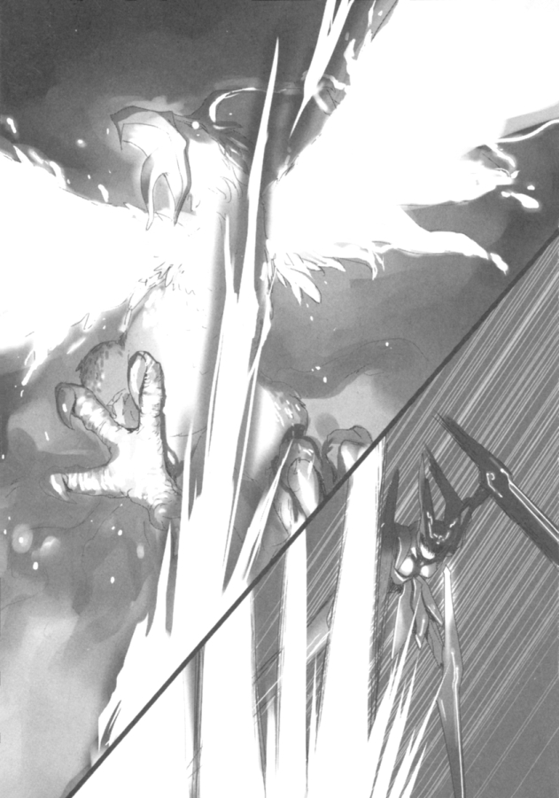Однако Скай Рейкер не останавливалась. Напротив, рев ее «Ураганного двигуна» все усиливался, реактивная струя тянулась кометным хвостом. Впереди гигантская птица, захлопав крыльями, двинулась с алтаря. Несмотря на ускоренное сознание Харуюки, дистанция между ним и птицей сокращалась с ужасающей быстротой.