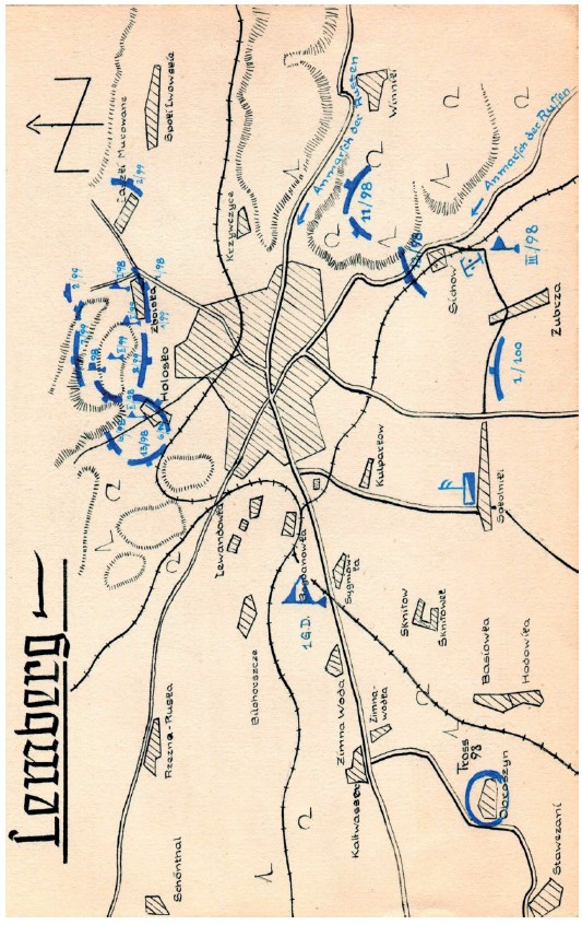 Двигаясь по дороге, обстреливаемой вражеской артиллерией, 13 сентября в пять часов утра мы вышли к окраинам Лемберга. Ночью у нашего авангарда были тяжелые бои с превосходящим по силе противником. Мой батальон подъехал на грузовиках в качестве подкрепления. Здесь мы встретили тринадцатую роту, которая вошла в город с первыми частями, тогда я в последний раз увидел моего дорогого друга лейтенанта Циммера. Четыре дня спустя он погиб смертью героя при контратаке противника. Он был надежным другом и хорошим человеком и отдал свою жизнь за всех нас. Еще до войны он не раз говорил, что умереть в бою – его судьба. Предчувствия не обманули солдата, его похоронили в Голоско.
