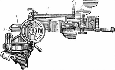 Основание вертикальной наводки (рис. 55) служит для крепления механизма тонкой наводки, для удержания всей качающейся части станка под требуемым углом и для крепления к станку патронной коробки. Основание вертикальной наводки состоит из остова основания, зажима грубой вертикальной наводки, механизма тонкой наводки и зажима тонкой вертикальной наводки.