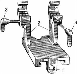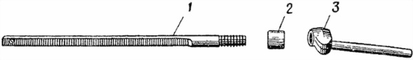 1 — тяга; 2 — втулка; 3 — гайка зажима с рукояткой