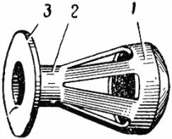 1 — головка; 2 — средняя коническая часть; 3 — цилиндрический навинтованный хвост
