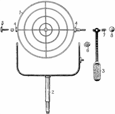 226. Привод служит для передвижения каретки с передним кольцевым визиром по дистанционной линейке при установке дальности. Привод состоит из следующих основных частей: ходового винта, предназначенного для перемещения каретки по дистанционной линейке, который вращается в заднем и переднем подшипниках; нижней пары конических шестерен (большой и малой); верхней пары конических шестерен (обе шестерни одинаковые); вращающегося подшипника; валика с чашечкой; установочных колец; валика с шаром; рукоятки с ручкой.