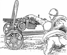 При стрельбе стоя, сидя и с колена положение наводчика и второго номера произвольное, — как удобнее для работы при пулемете.
