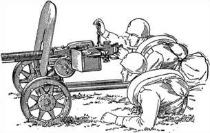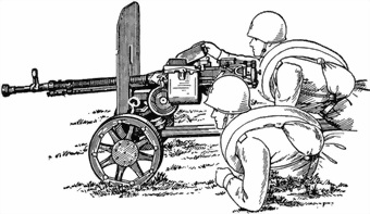 299. Цель для пулемета указывает командир или же ее выбирает наводчик самостоятельно. Ведя огонь самостоятельно, наводчик должен определить характер, месторасположение, размеры, удаление, важность цели и поражать в первую очередь наиболее важные и опасные цели: орудия, пулеметы, бронетранспортеры противника и т, п. При равноценности целей выбирать ближайшую.