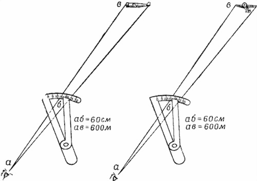 Рис. 127. Наводка по самолету, пикирующему на соседнюю точку, с прицелами обр. 1938 г. и 1941 г., при раккурсе самолета 1/2 и скорости 400–450 км/час