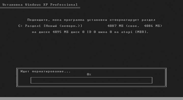 После этого произойдет форматирование диска [15] , которое займет от 3 до 15 минут в зависимости от размера выбранного раздела (рис. 7.7).
