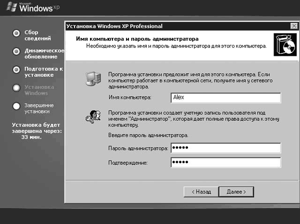 Затем вводится имя компьютера в локальной сети и пароль администратора (рис. 7.12).