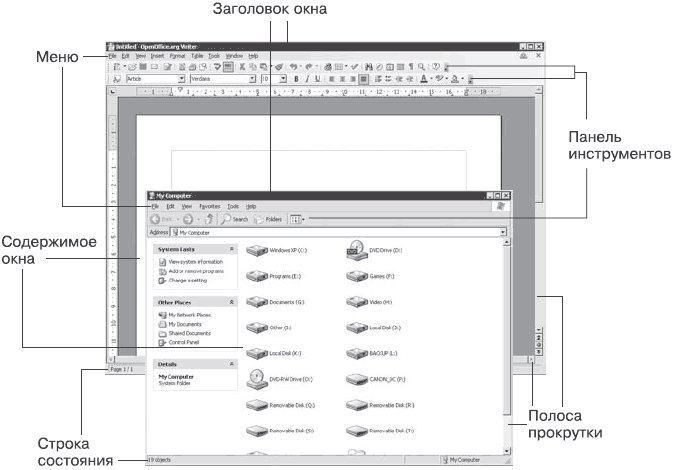 На рис. 8.3 показано два окна совершенно разных программ, однако они имеют много общего.