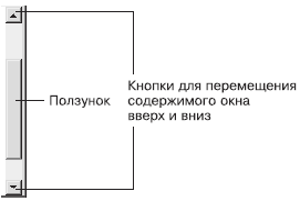 Полосы прокрутки бывают вертикальными и горизонтальными. Они состоят из двух основных элементов: кнопок и ползунка. Кнопки располагаются в начале и конце полосы прокрутки. На каждую из них нанесена стрелка, обозначающая, в какую сторону передвигать содержимое (вверх/вниз, вправо/влево). При нажатии одной из кнопок содержимое окна будет двигаться.