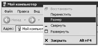 У окон также есть контекстное ме ню, которое называется системным (рис. 8.18).