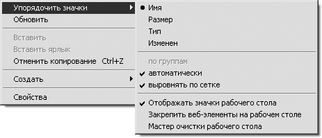 Рис. 10.3. Настройка расположения значков на Рабочем столе