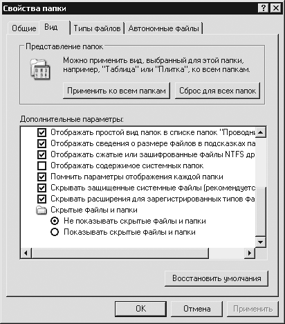 Рис. 11.11. Окно Свойства папки, вкладка Вид