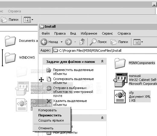Рис. 11.13. Контекстное меню, вызываемое при перемещении или копировании файлов и папок
